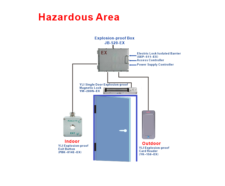 Explosion-proof magnetic lock is a kind of intrinsically safe electromagnetic lock that can be used in inflammable and explosive gas environment. It has simple structure, easy installation and maintenance, wear resistance, high reliability, and can be unlocked by power failure to escape in case of danger. It is especially suitable for petrochemical and other inflammable and explosive places.The explosion-proof electromagnetic lock produced by YLI are designed and manufactured in accordance with the relevant provisions of EU regulations EN IEC 60079-0:2018, IEC 60079-11:2012, EN 61241-11:2006.